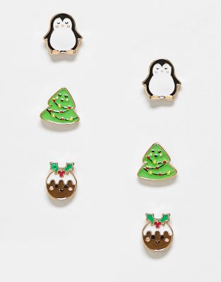 ASOS DESIGN - Jul - Pakke med 3 par sjove øreringe med emalje-design