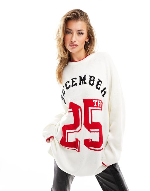 ASOS DESIGN - Juletrøje i college-stil med kantbånd