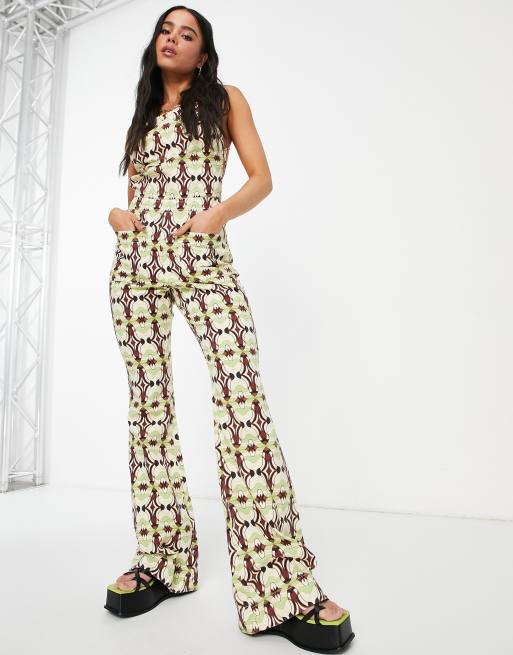 ASOS DESIGN - Jumpsuit i geometrisk print med halterneck og ben med svaj