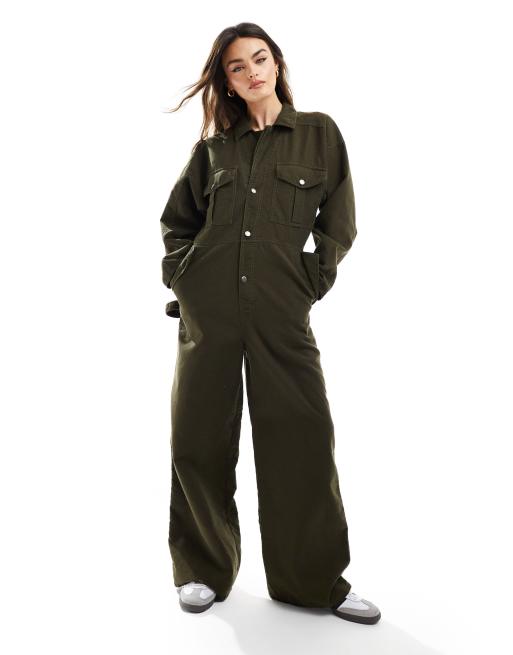 ASOS DESIGN - Kaki kedeldragt med dobbelt krave i førsteklasses stof med opsmøg på buksekanten