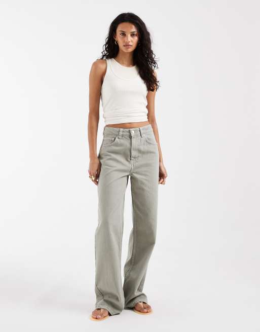 ASOS DESIGN - Kakifarvede dad-jeans med vide ben