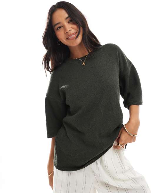 ASOS DESIGN - Kakigrøn afslappet T-shirt i løstsiddende strik