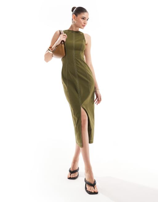 ASOS DESIGN - Kakigrøn midikjole med topsyninger