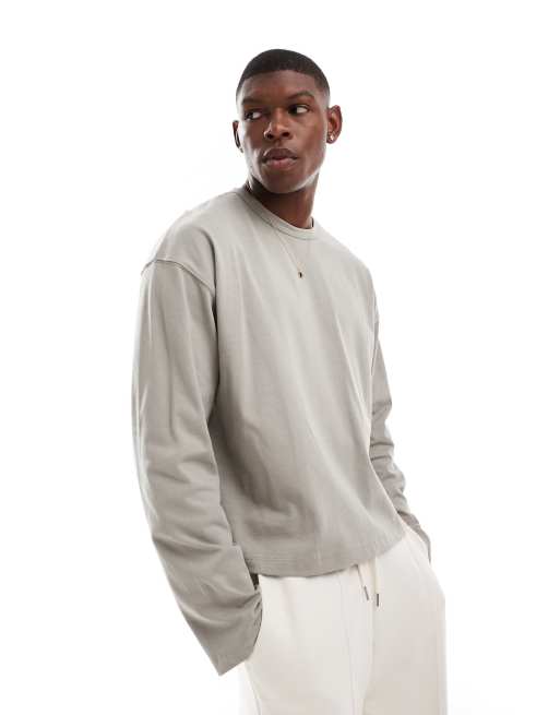 ASOS DESIGN - Kakigrøn oversized T-shirt med lange ærmer i kraftigt stof i firkantet pasform