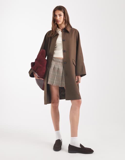 ASOS DESIGN - Kakigrøn skræddersyet mellemlang kørefrakke med striber på ærmerne