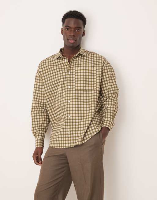 ASOS DESIGN - Kakigrøn super-oversized skjorte med tern