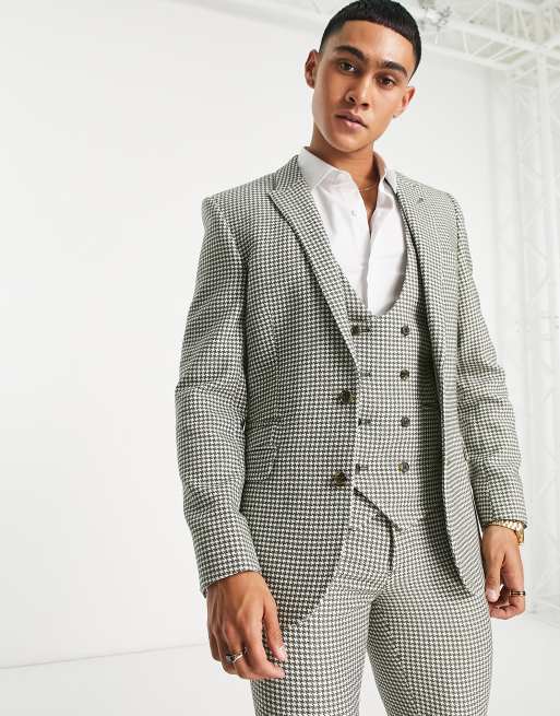 ASOS DESIGN - Kakigrøn super skinny-habitjakke i pepitatern