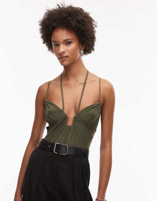 ASOS DESIGN - Kakigrøn tætsiddende bodystocking med stropper
