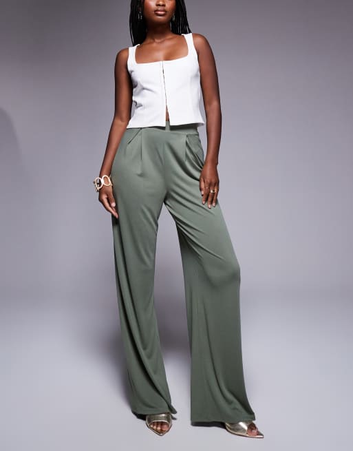 ASOS DESIGN - Kakigrønne og plisserede bukser med brede ben i blødt stof