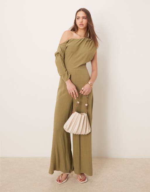 ASOS DESIGN - Kakigrønt oneshoulder-jumpsuit i hør