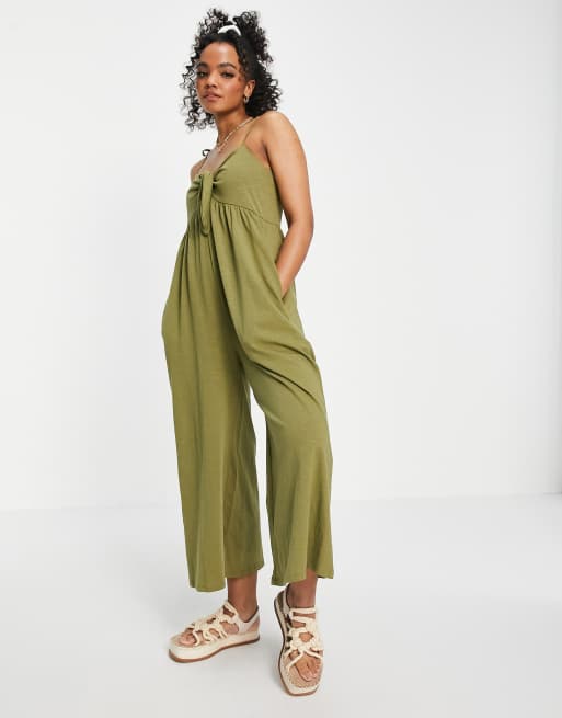 ASOS DESIGN - Kakigrønt swing-jumpsuit uden ærmer med bindebånd foran