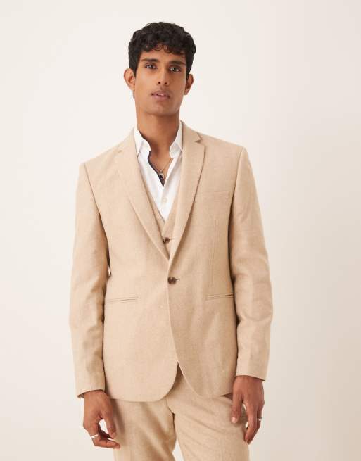 ASOS DESIGN - Kamelbrun smal habitjakke i hørblanding