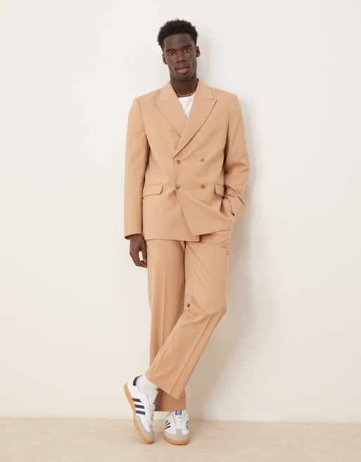 ASOS DESIGN - Kamelbrunt og dobbeltradet jakkesæt med afslappet pasform
