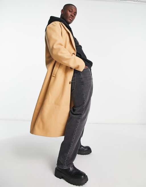 ASOS DESIGN - Kamelfarvet afslappet overfrakke med uldlook