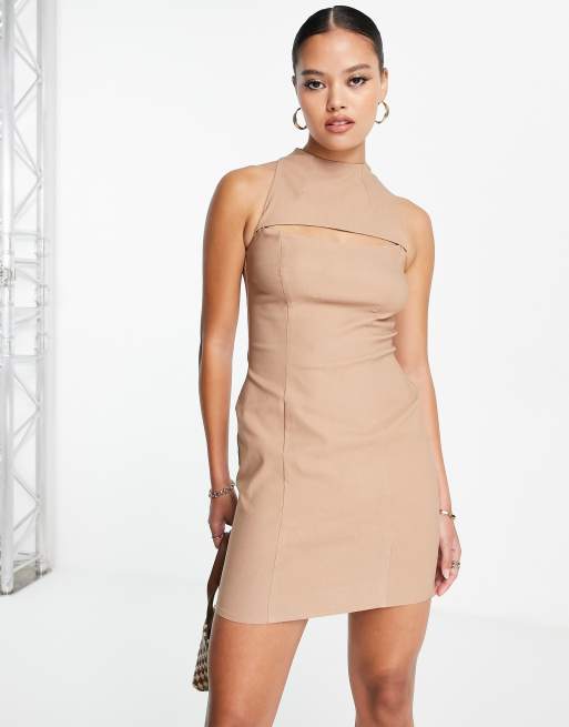 ASOS DESIGN - Kamelfarvet struktureret racer-minikjole med slids