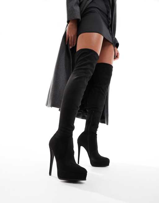 ASOS DESIGN - Kaska - Sorte højhælede plateau-støvler i mikrofiber