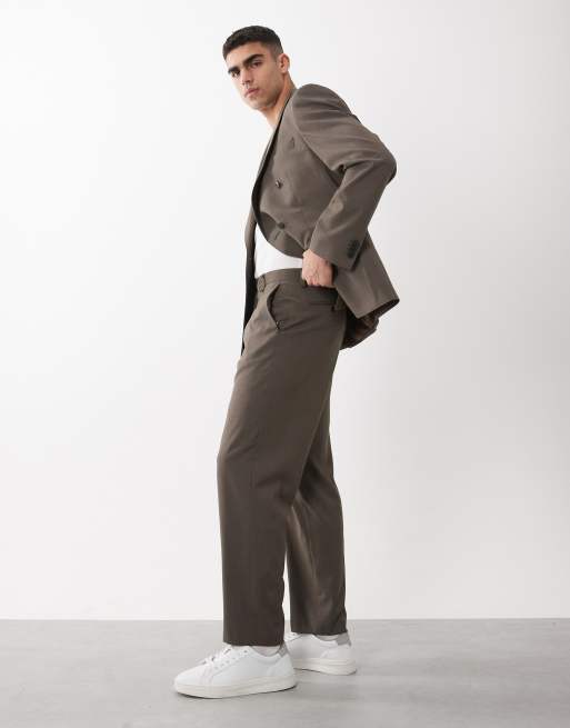 ASOS DESIGN - Khaki dobbeltradet jakkesæt i regular fit