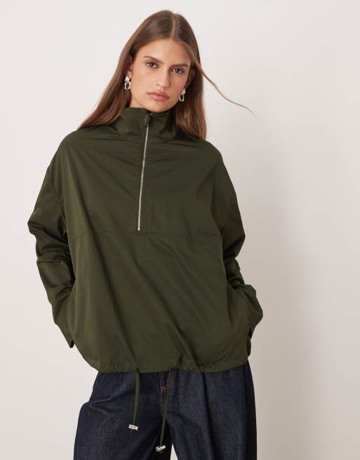 ASOS DESIGN - Khaki jakke med lynlås og ståkrave i techstof