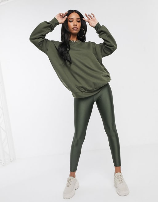 ASOS DESIGN - Khakifarvet sæt med oversized sweatshirt og discoleggings