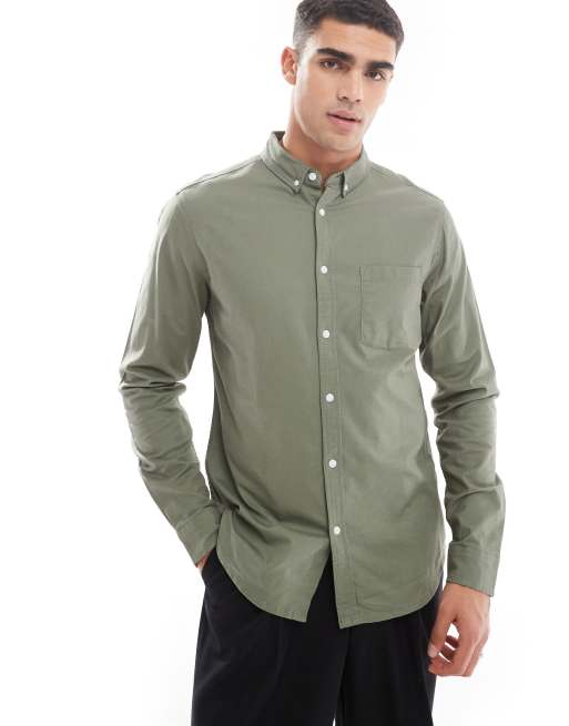 ASOS DESIGN — Khakigrøn oxfordskjorte med smal pasform