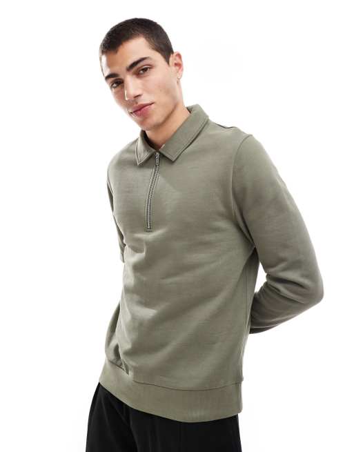 ASOS DESIGN - Khakigrøn polo-sweatshirt med lynlås