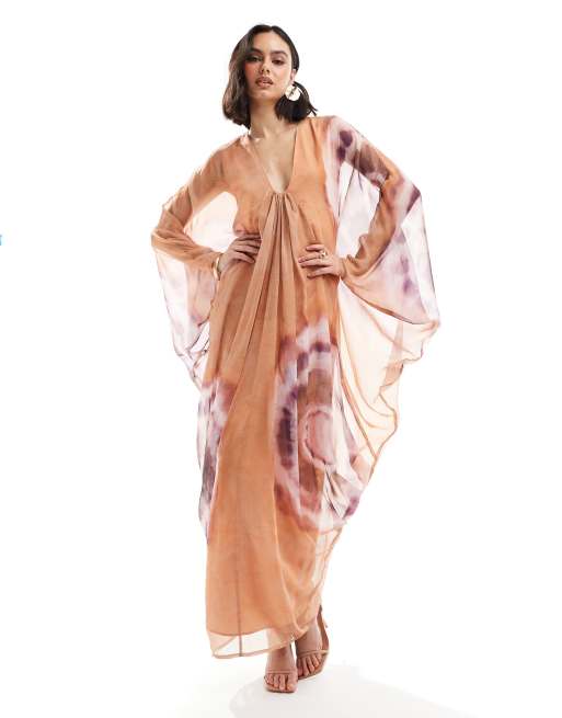 ASOS DESIGN - Kimono-maxikjole med dyb udskæring og batik