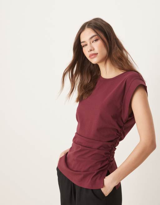 ASOS DESIGN - Kirsebærfarvet tanktop med korsettalje og skarpt skårne skuldre
