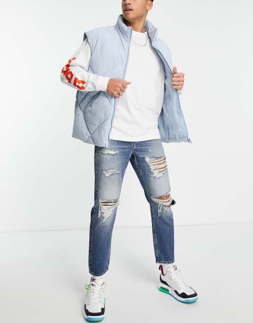 ASOS DESIGN - Klassiske stive jeans i mellemvask med store flænger
