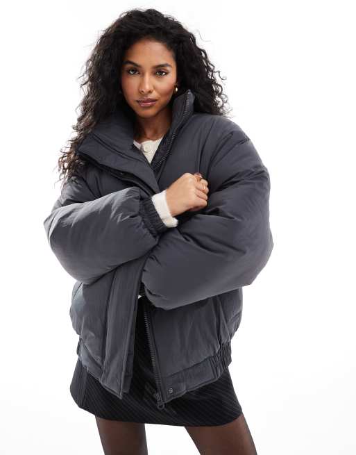 ASOS DESIGN - Koksgrå bomber-jakke med rent snit og ståkrave