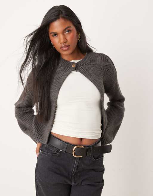 ASOS DESIGN - Koksgrå cardigan med rund hals og knap