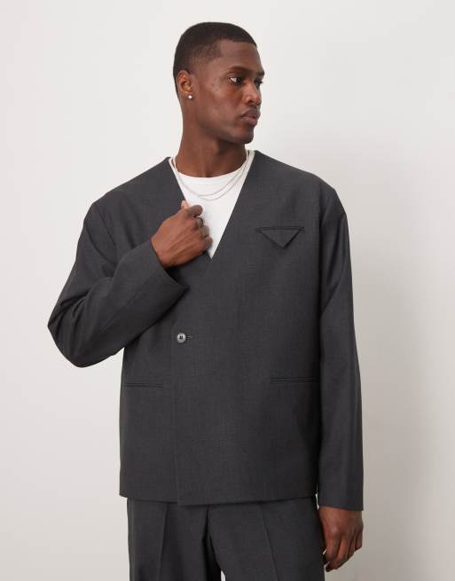 ASOS DESIGN - Koksgrå dobbeltradet habitjakke uden krave i firkantet pasform
