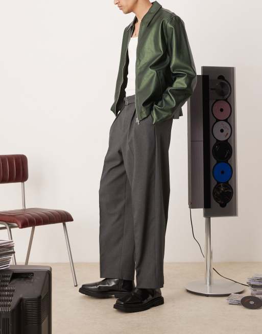ASOS DESIGN - Koksgrå elegante bukser med bælte og brede ben samt plisseringer foran