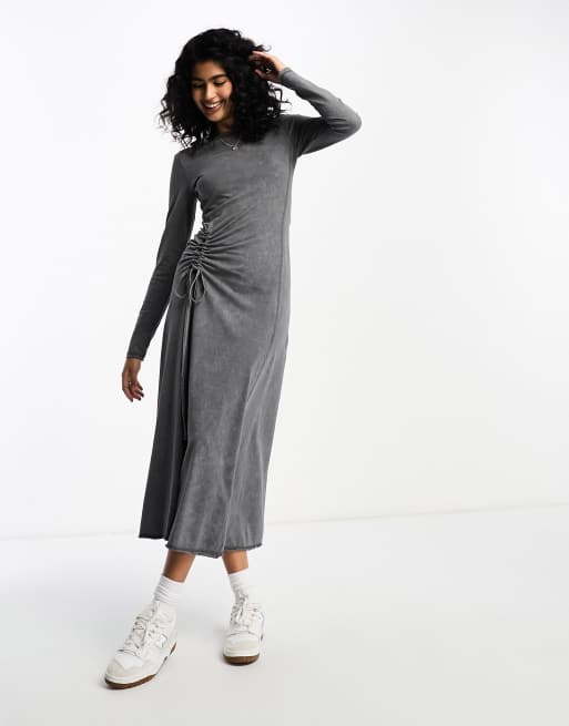 ASOS DESIGN - Koksgrå forvasket langærmet maxikjole med rynket side