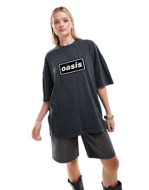 ASOS DESIGN - Koksgrå forvasket T-shirt i oversized pasform med licenseret "Oasis"-print