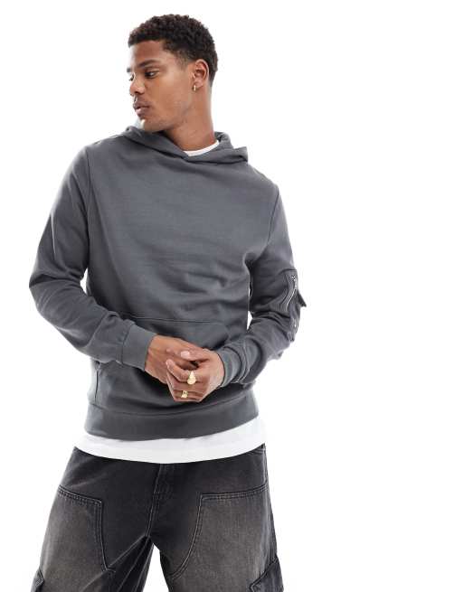ASOS DESIGN - Koksgrå hættetrøje med MA1-lomme