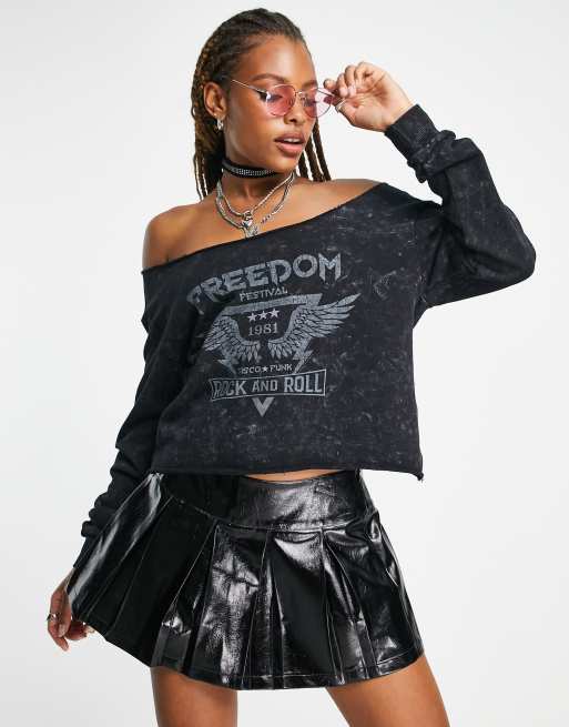 ASOS DESIGN - Koksgrå løstsiddende offshoulder-sweatshirt med Freedom-grafik