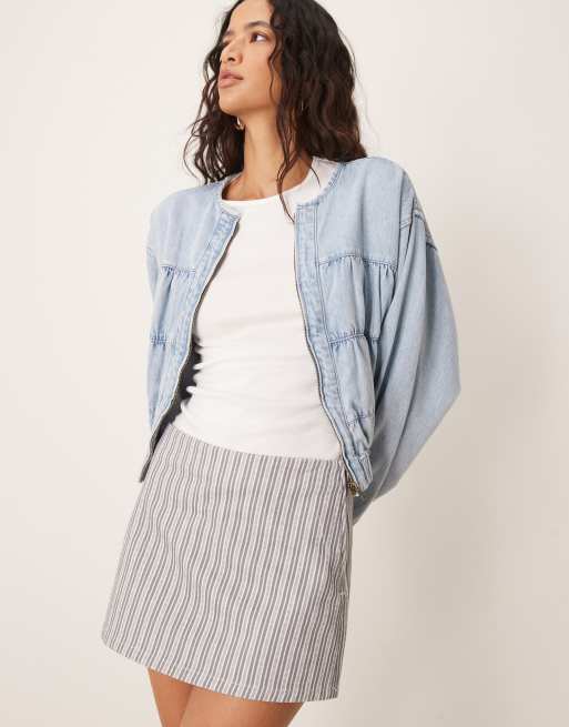 ASOS DESIGN - Koksgrå nålestribet mininederdel med mikro-længde i denim