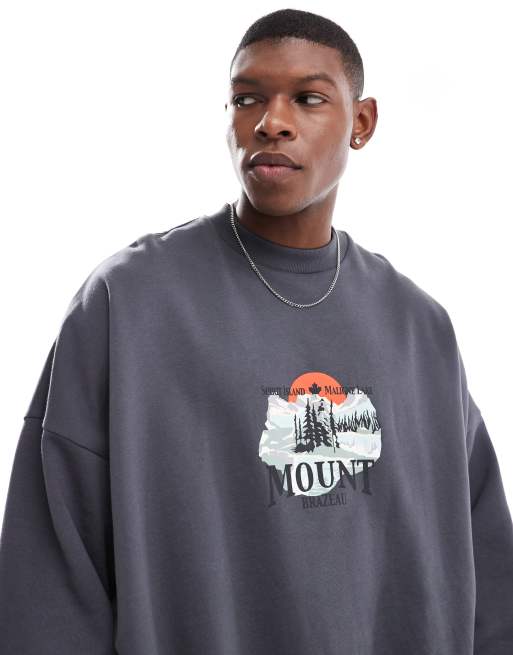 ASOS DESIGN - Koksgrå og super-oversized sweatshirt med print på brystet