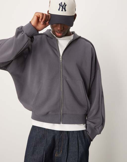 ASOS DESIGN - Koksgrå oversized firkantet hættetrøje med sænkede skuldre og sømdetaljer