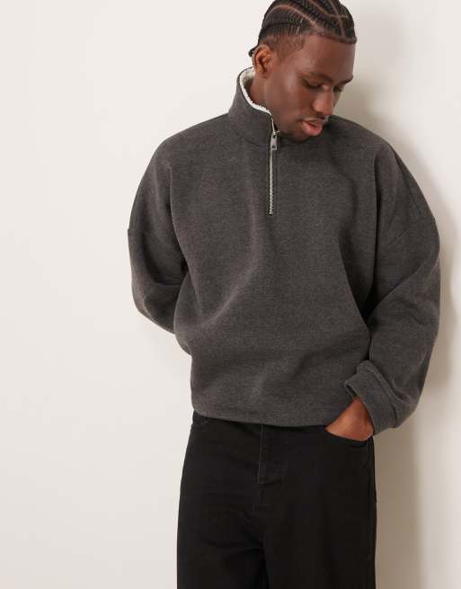 ASOS DESIGN - Koksgrå oversized sweatshirt med sænkede skuldre, ståkrave og for i imiteret lammeskind i firkantet pasform