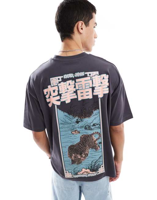 ASOS DESIGN - Koksgrå oversized T-shirt med grafisk print på ryggen
