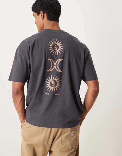 ASOS DESIGN - Koksgrå oversized T-shirt med kosmisk grafik