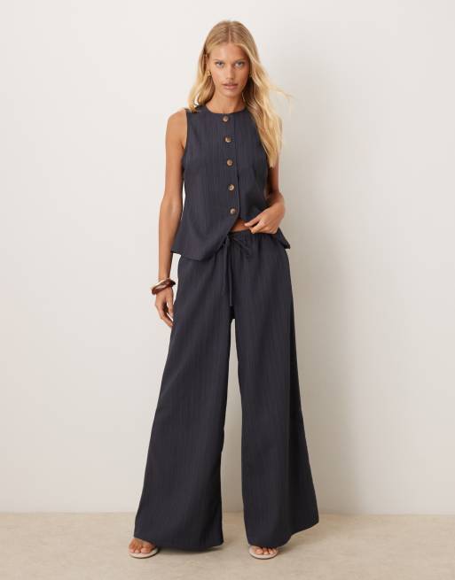 ASOS DESIGN - Koksgrå palazzo-bukser i krølstof - Del af sæt
