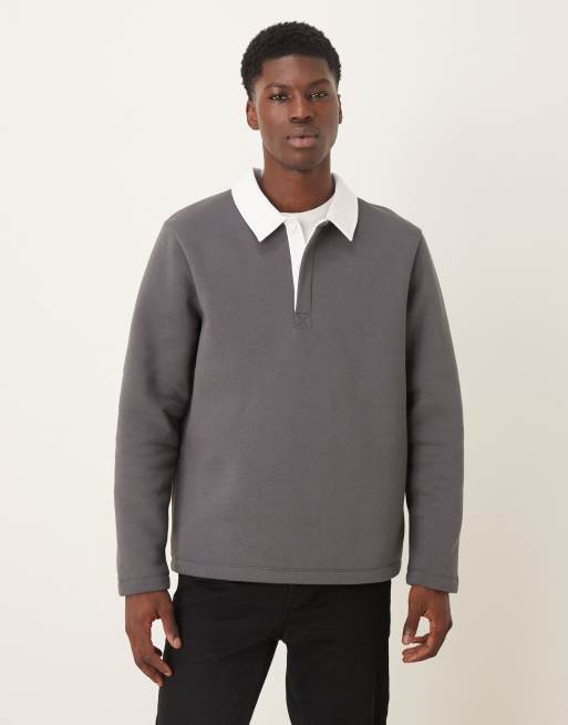 ASOS DESIGN - Koksgrå sweatshirt med polohals og kontrastkrave