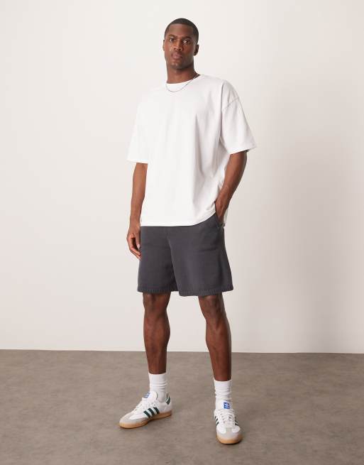 ASOS DESIGN - Koksgråt sæt i mellemkraftig kvalitet med strikkede shorts