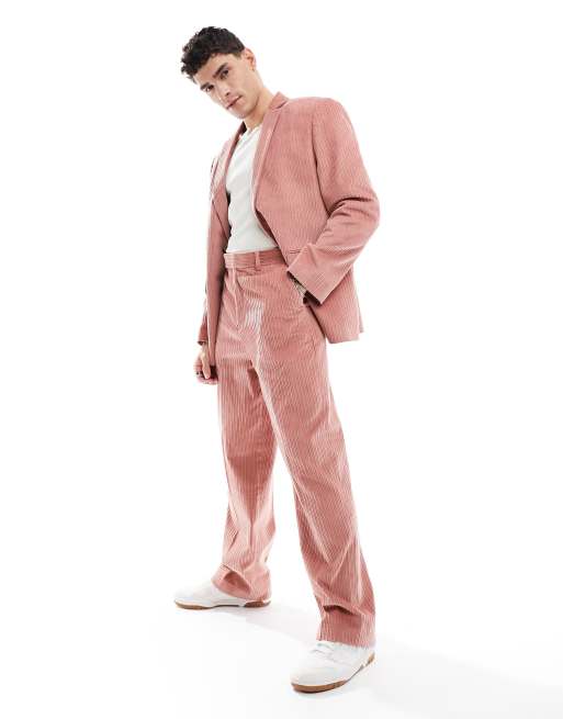 ASOS DESIGN - Koral-lyserøde habitbukser med vide ben i fløjl
