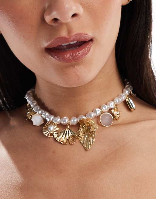 ASOS DESIGN - Kort halskæde med imiterede perler og vedhængsdetajle