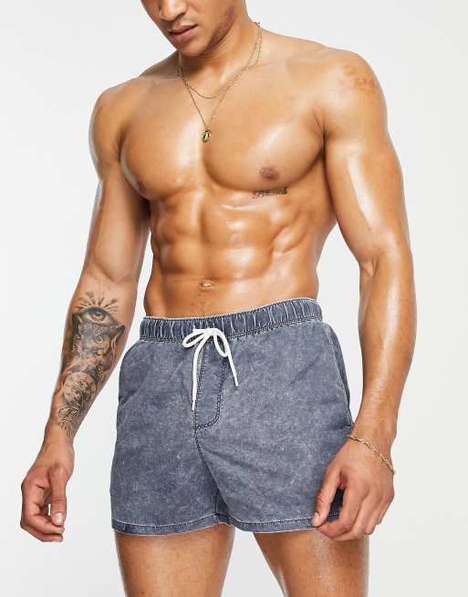 ASOS DESIGN - Korte badeshorts i marineblå syrevask