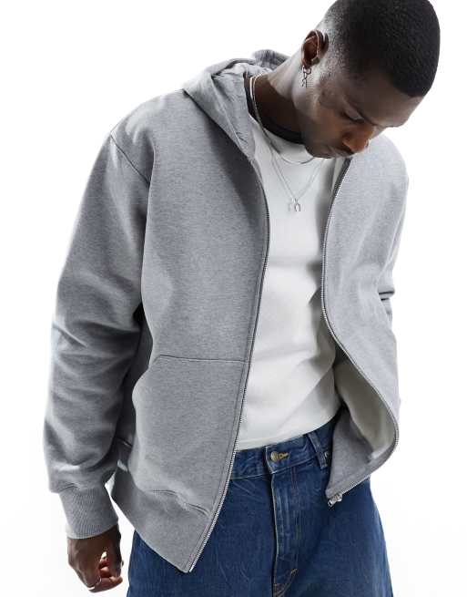 ASOS DESIGN - Kraftig og oversized hættetrøje med lynlås i grå marl
