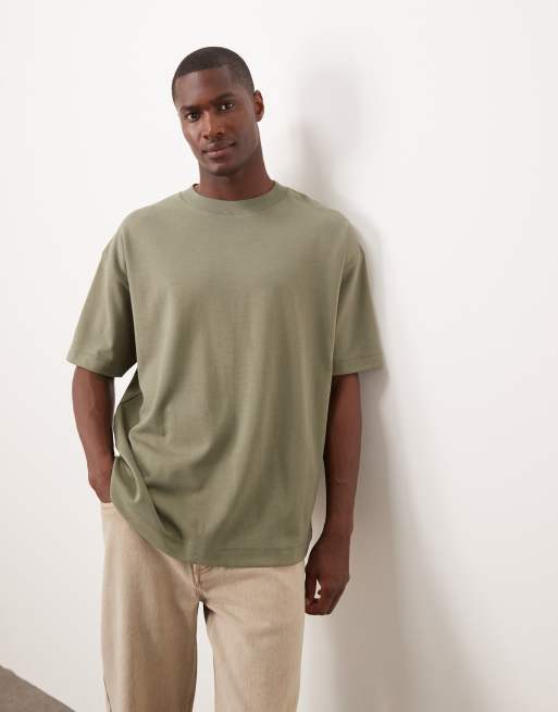 ASOS DESIGN - Kraftig og oversized kakifarvet T-shirt i blødt stof